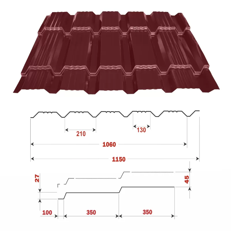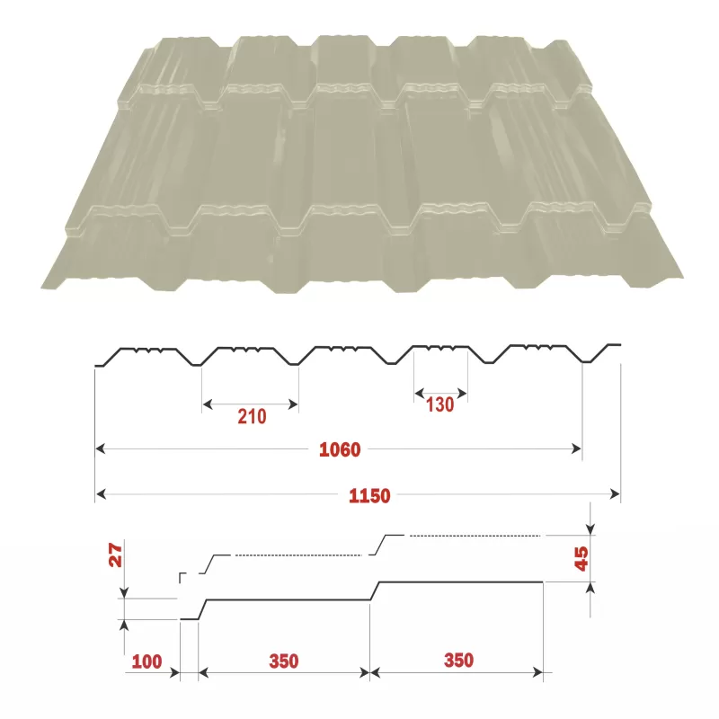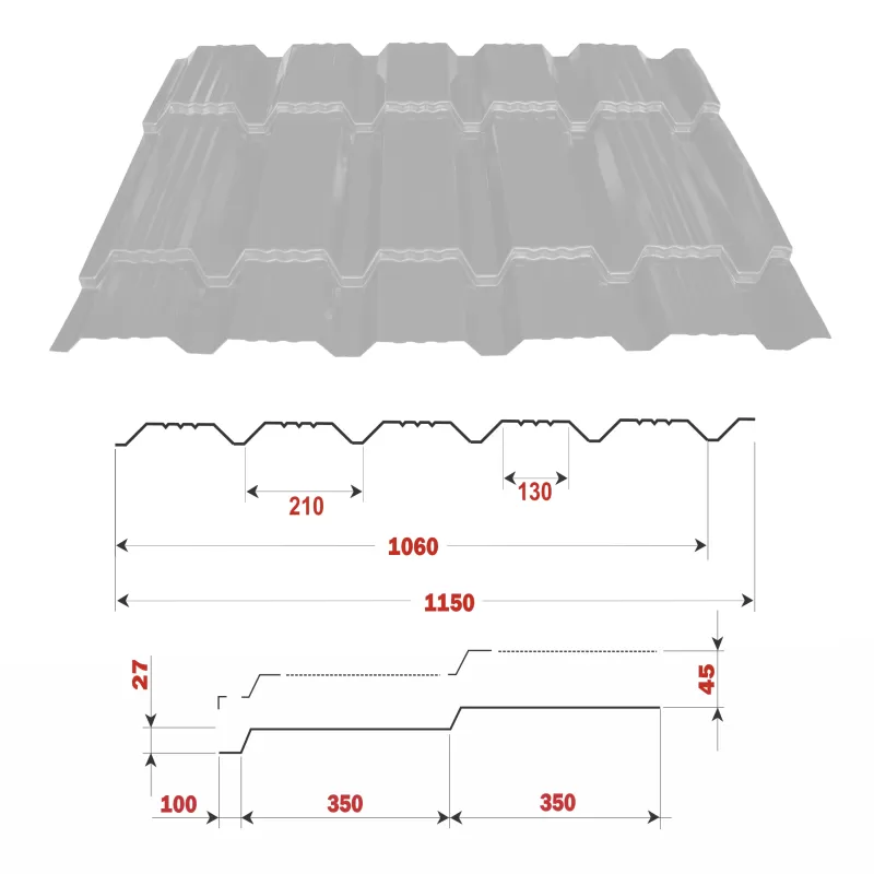- Կղմինդրի հաստություն՝ 0,45 ; 0,5 (մմ)